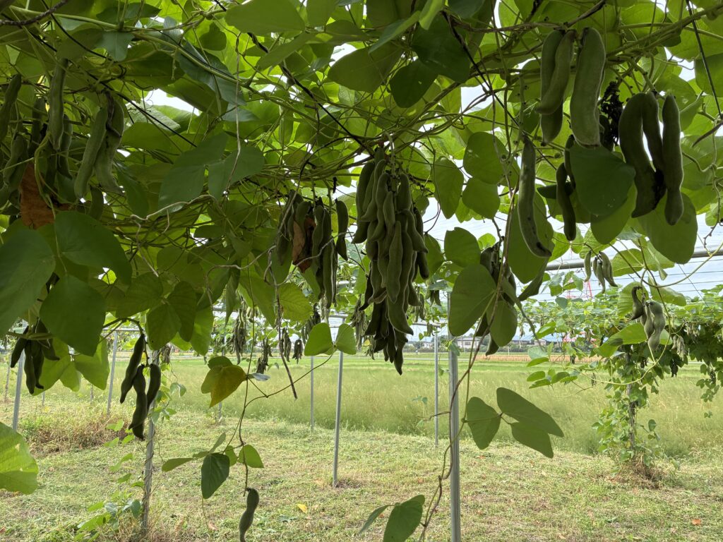 むくな豆自体は何も管理できておらず、草刈りが精一杯でしたが大きな房がたくさんついていました。
