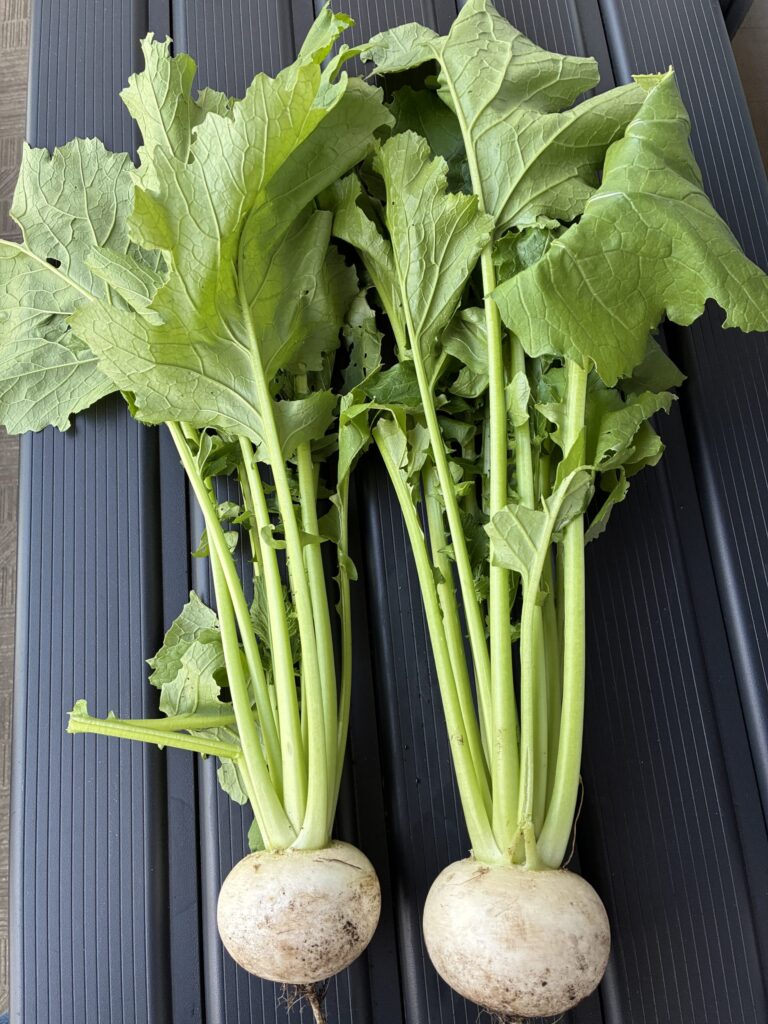 寒くなってきたので、ほうれん草、小松菜、カブの収穫が美味しくなります。