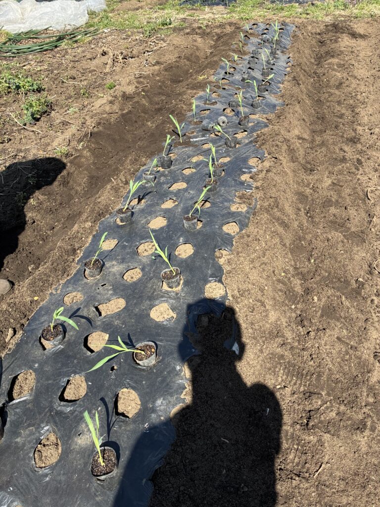 今回は知り合いからいただいたトウモロコシの苗を定植しました。